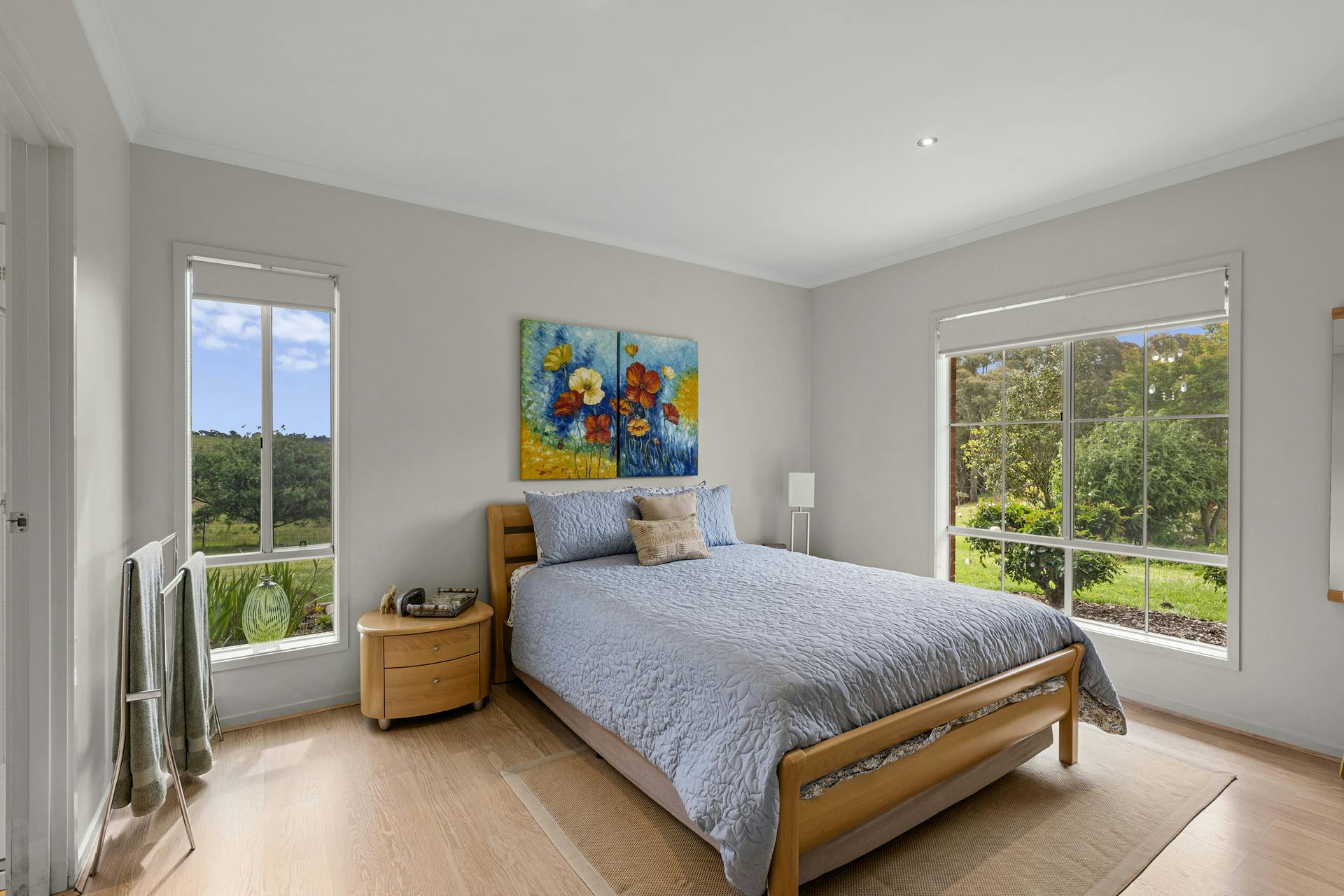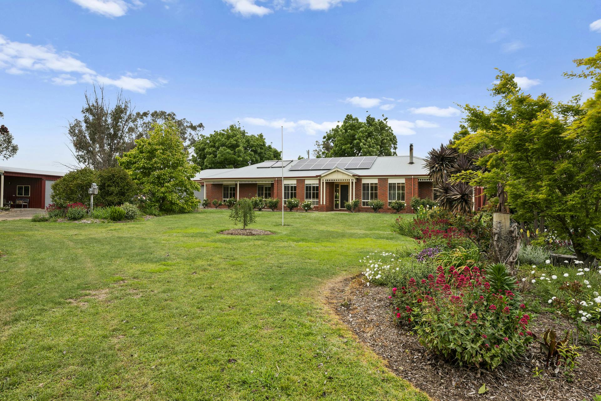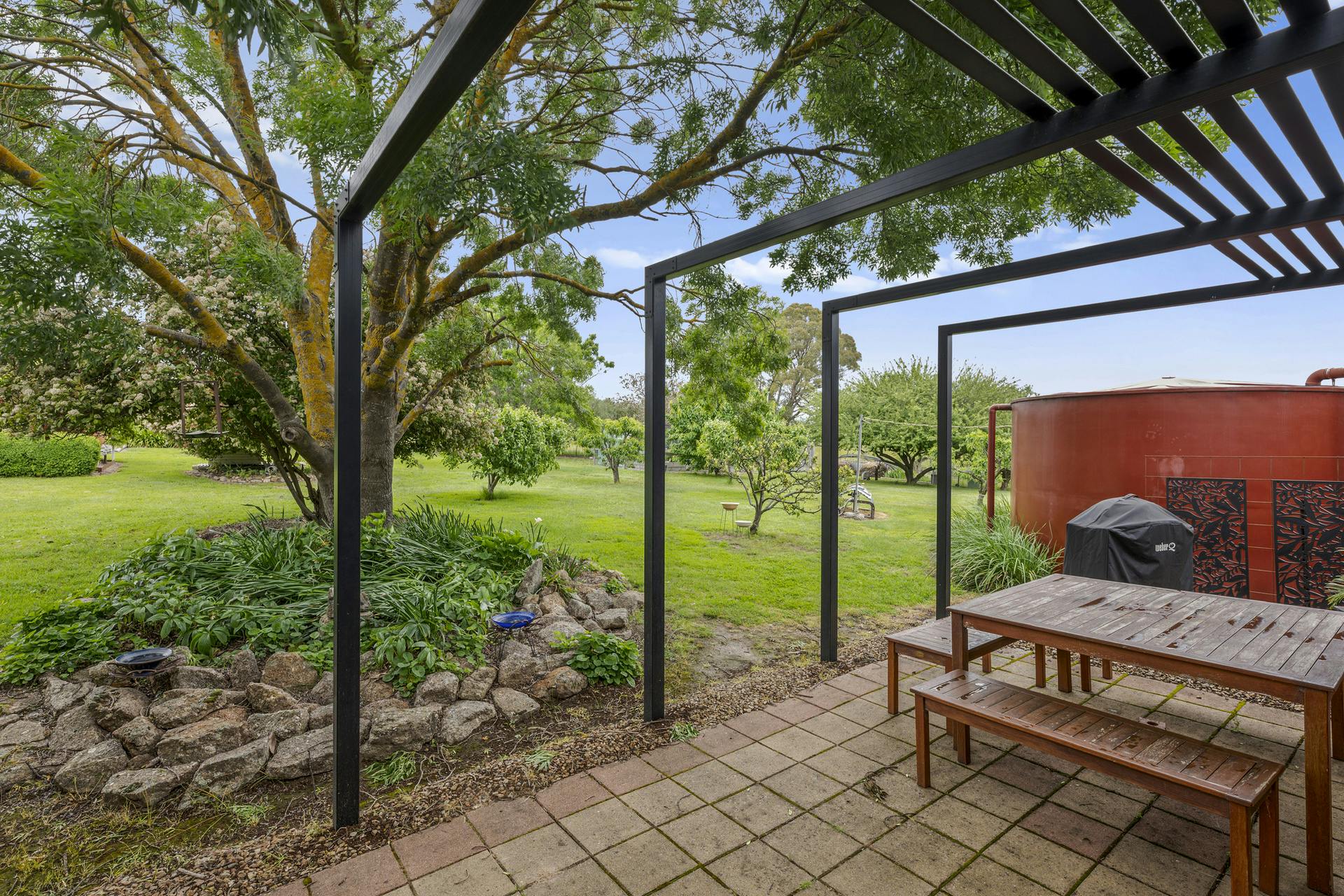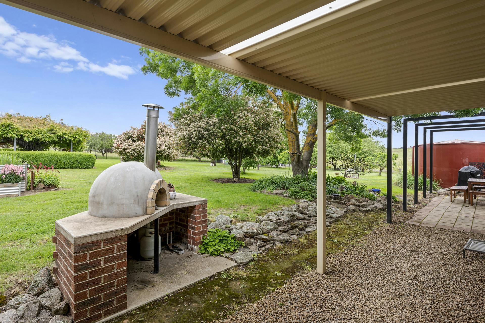 Outdoors is where Dumbarton really settles the argument. Established gardens frame wide lawns, with fruit trees and veggie beds ready for the next season. The entertaining area is made for long lunches-complete with built-in pizza oven. A modern powered shed, solar panels plus solar-boosted hot water, two reliable spring-fed dams, a bore, and tank water to the house round out this offering.