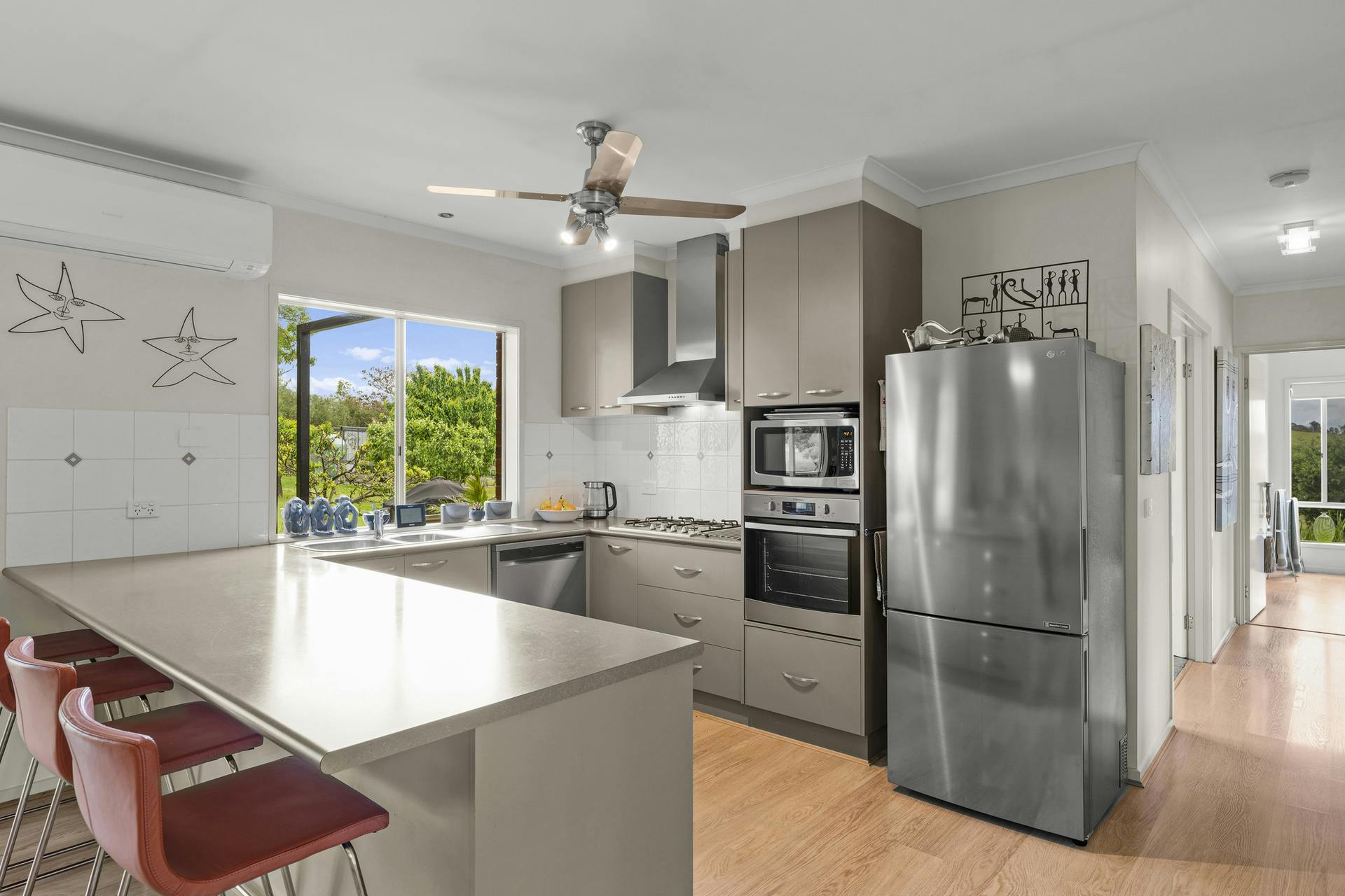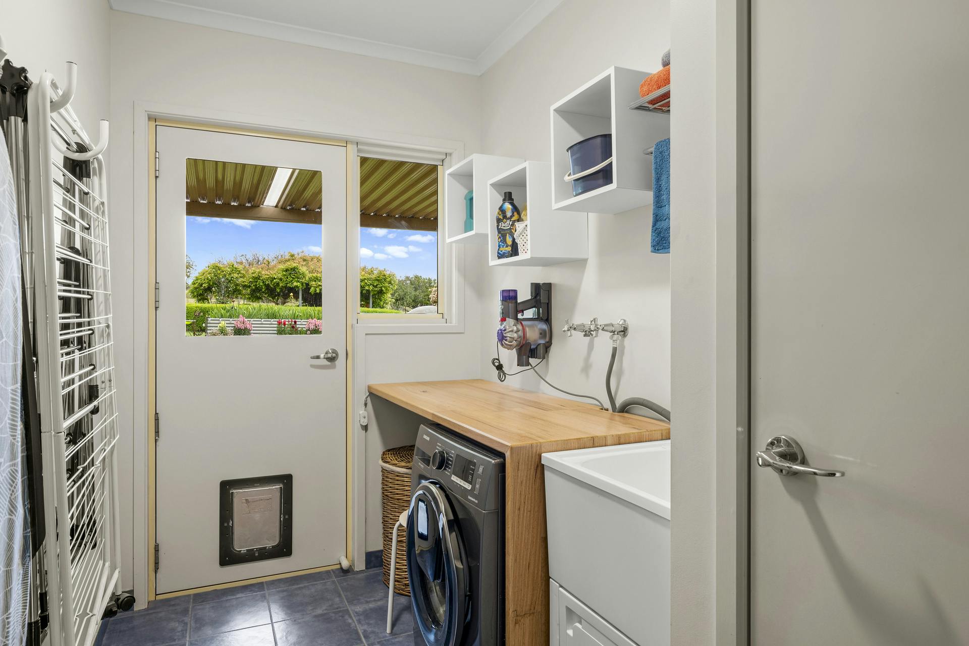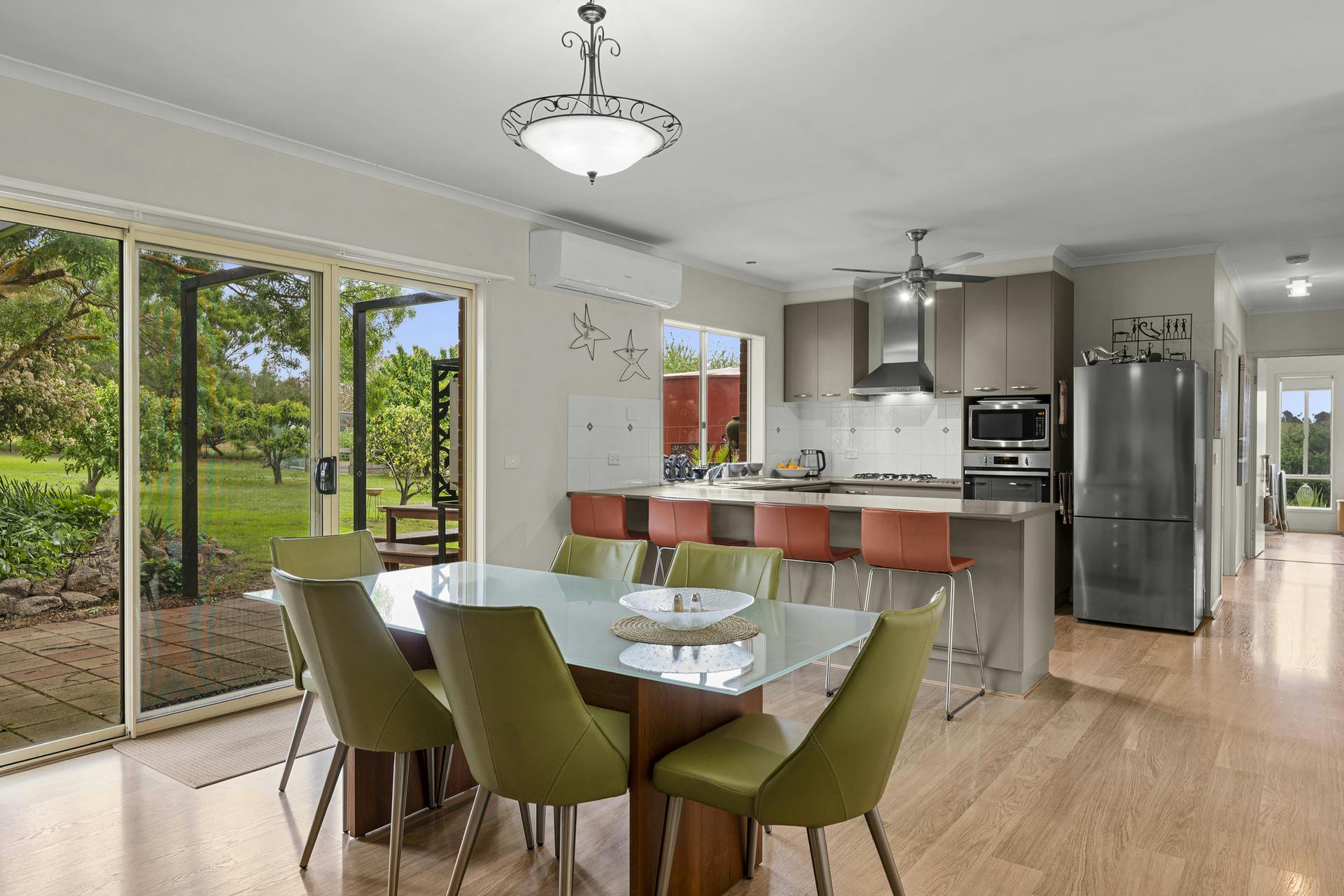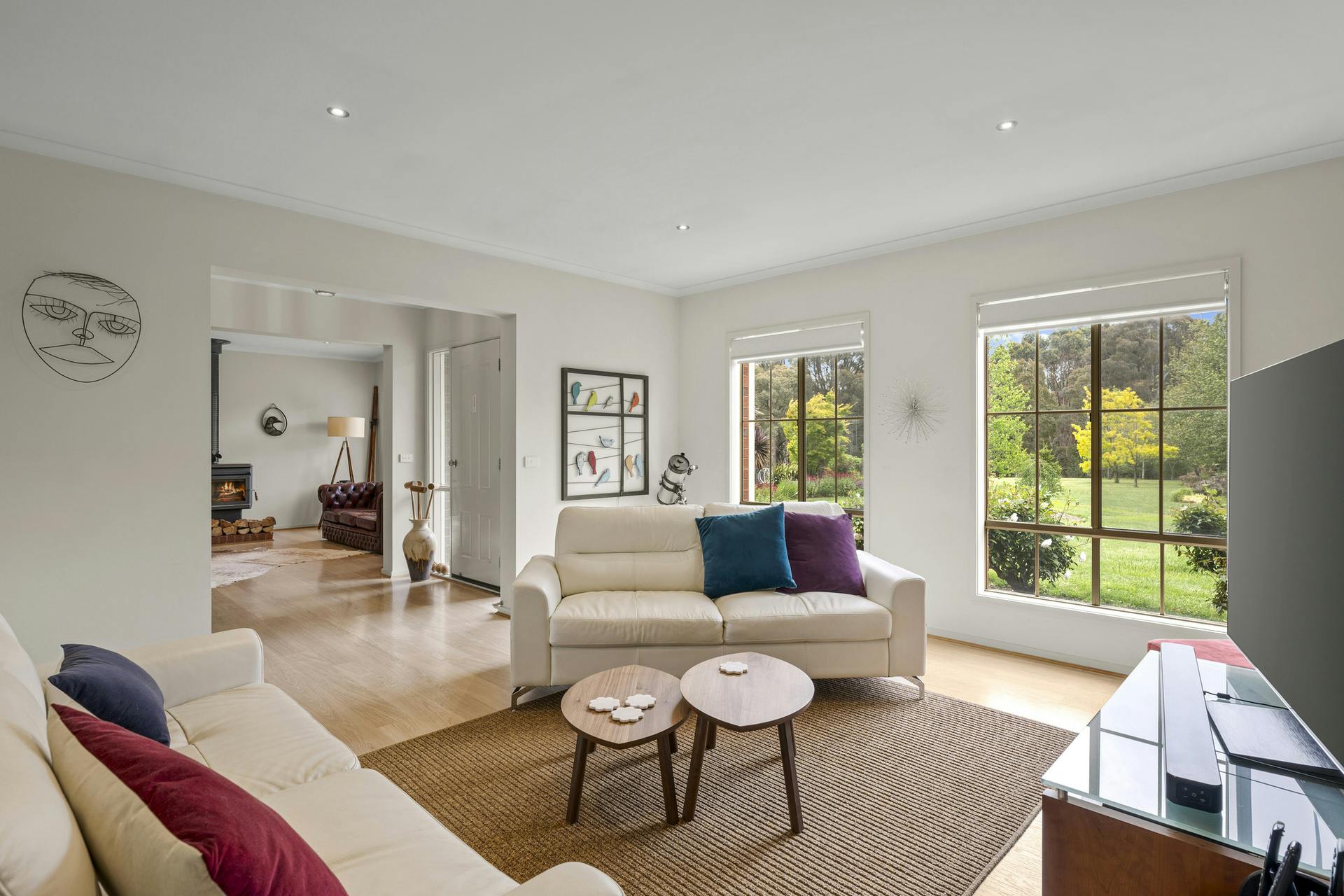 • Light, bright living with wood heater and reverse-cycle heating/cooling